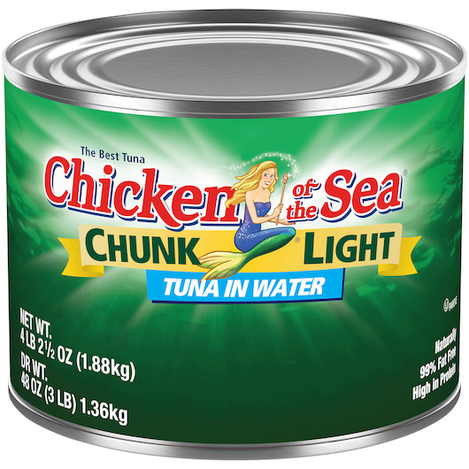 Chicken Of The Sea Imported Water Light Chunk Tuna is a case-packed food item for grocery shelves, foodservice kitchens, cafeterias, restaurants, office pantries, and convenience programs.