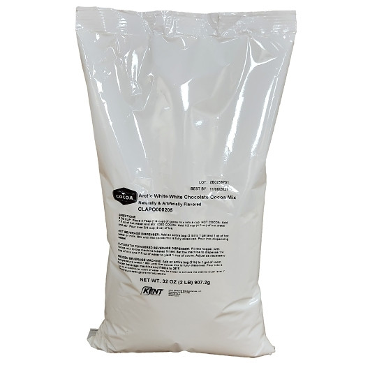 Cocoa Classics Arctic White Chocolate Cocoa Mix Bags is a beverage item for offices, hospitality areas, cafeterias, convenience stores, and self-serve drink stations.