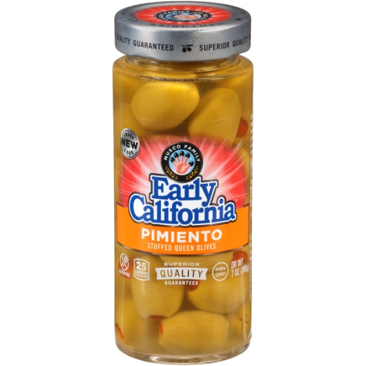 Early California Pimento Stuffed Queen Olives Jar, 7 Ounce, 12 Per Case