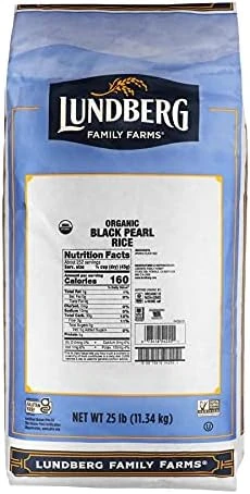 Lundberg Family Farms Organic Black Pearl Rice, 25 Pound, 1 Per Case