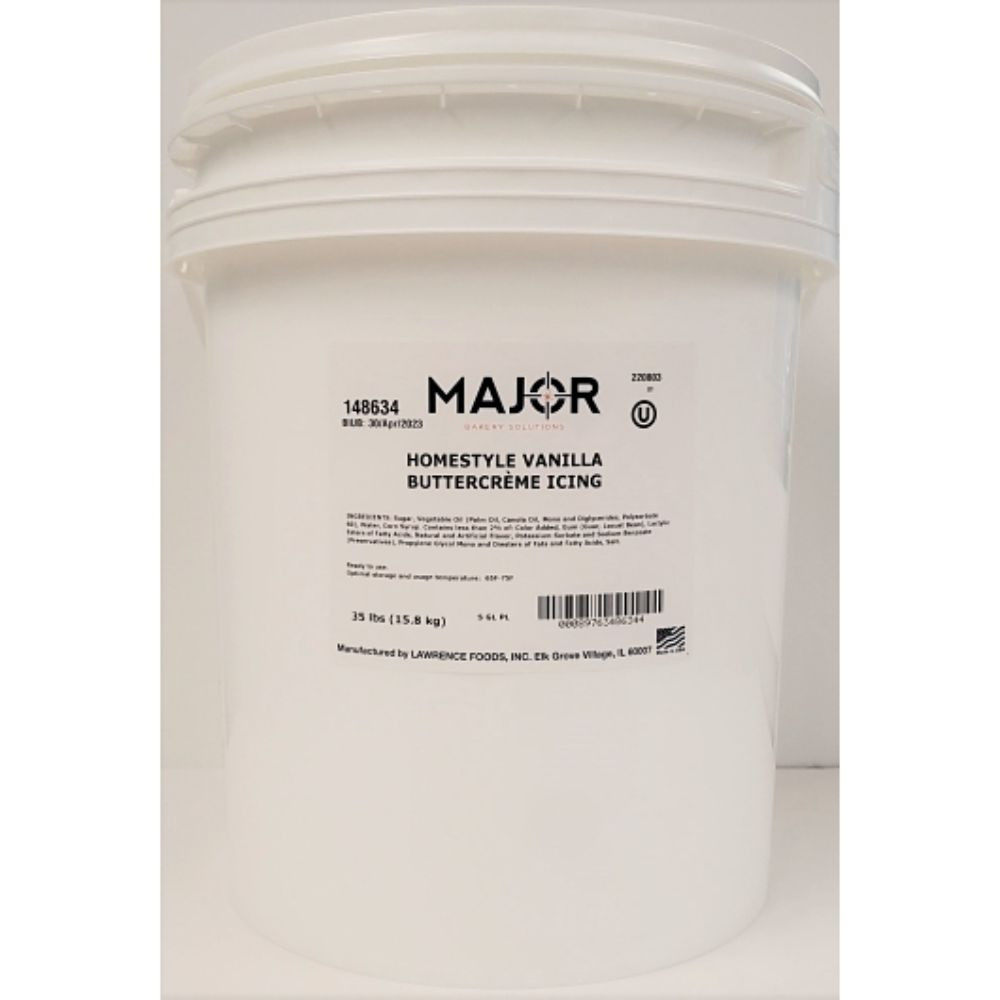 Description Get the Lawrence Foods Homestyle Vanilla Buttercreme Icing to decorate desserts in no time. It has a rich, creamy texture with a delectable vanilla flavor, making it ideal for cupcakes, donuts, cakes, and cookies. This pre-pared icing will save hours of labor when prepping for bulk orders. The Lawrence Foods icing bulk pack will make a great buy for fundraising events, dessert counters, and coffee shops. Vanilla buttercream icing Ready-to-use icing for cakes and donuts 35 lb. (16 kg) each