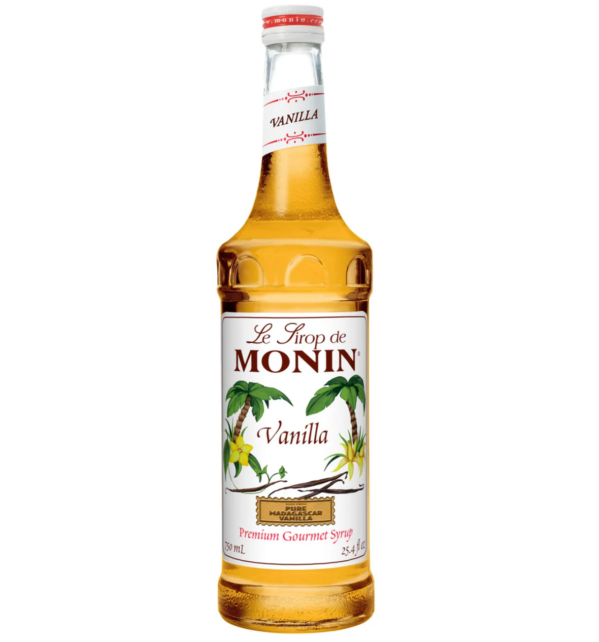 Monin Vanilla Flavor Syrup Glass, 750 ml, 12 Per Case