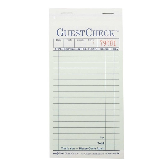 National Checking Company Carbonless Guest Check Paper – 2 Part Green, 17 Line, 3.4 x 6.75 inch, 2500 Per Case.