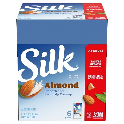 Description Treat Yourself To Shelf-Stable Silk Original Almondmilk. Made With Three Types Of Almonds That Are Grown By Mother Nature, This Dairy Free, Gluten Free, And Lactose Free Milk Is Simply Delicious. Plus, It s An Extraordinary Tasting Plant Based Milk That You Can Use Throughout Your Day. Every Serving Of This Non Dairy Milk Is A Good Source Of Calcium And Vitamin D To Help Support Strong Bones. Silk Almondmilk Is Free Of Dairy, Lactose, Soy, Gluten, Cholesterol, Artificial Colors And Artificial Flavors. This Shelf-Stable Almondmilk Doesnt Require Refrigeration Until After Opening, So You Can Stock Up And Store This Dairy Free Milk For Months Without Sacrificing Taste. Whether Youre Making A Healthy Smoothie, Making A Bowl Of Tasty Cereal, Looking For Baking Supplies Or Drinking Straight Out Of A Glass, Trust Silk The Original Plant Pioneer. Enjoy More Silk Products, Including Vegan Milk, Non Dairy Creamer And Dairy Free Yogurt Varieties.