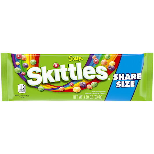 Description The Skittles Sour Bite Size Candies are a fun and delicious treat that can be enjoyed by kids and adults alike. These bite-sized delights are great for enjoying on the go. Sour candy Delicious treat Bite sized Great for snacking on the go 3.3 oz. (93.55 g) each 24 candies per pack 6 packs per case