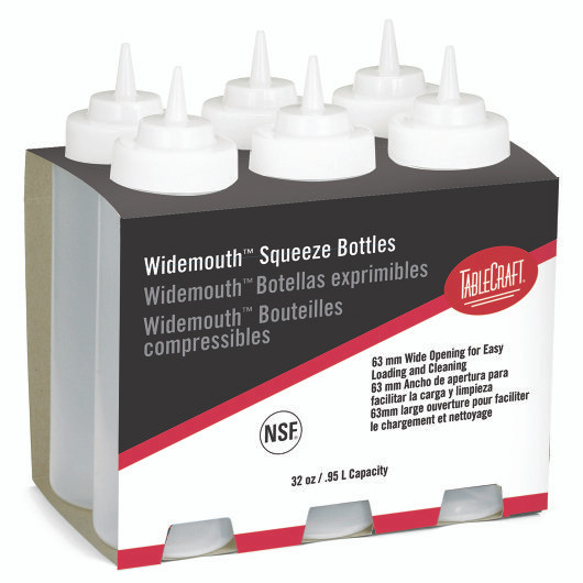 Description 32 oz/.95 L NATURAL WIDEMOUTH , 6 PK SQUEEZE BOTTLE DISPENSER *Orders received after 2pm EST may be delayed by one business day. Most products are shipped with UPS Ground and take 1-4 business days to arrive.