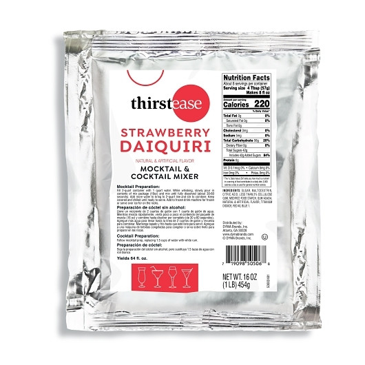 Description Thirst Ease Strawberry Daiquiri Drink Mix – 1 lb Packs, 12 Pack Case Mocktail or Cocktail • Just Add Water • Kosher Certified Bring bold strawberry flavor to your beverage lineup with Thirst Ease Strawberry Daiquiri Mix . This easy-to-use dry-blend drink mix makes delicious strawberry daiquiris—served frozen or on the rocks. Perfect for bars, events, food service, or at-home entertaining , each 1 lb pouch makes 2 quarts of refreshing mocktails or cocktails. Just add water, stir, chill, and serve. For cocktails, replace 1.5 cups of water with white rum. Classic strawberry daiquiri flavor Makes mocktails or cocktails Easy prep—just add water Use in frozen drink machines or serve over ice Kosher certified 1 lb dry mix per pouch | 12 pouches per case Ideal for bars, catering, events, or home parties Preparation Instructions: Mocktail: Mix 1 pouch with 1 quart of water. Whisk to dissolve. Add water to make 2 quarts total. Chill before serving. Cocktail: Use same prep, replacing 1.5 cups of water with white rum. Serve frozen or over ice.