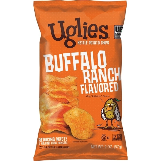 Description Uglies Buffalo Ranch Kettle-Cooked Potato Chips – 2 oz Bags (24-Pack) Spicy, tangy, and irresistible! Uglies Buffalo Ranch Kettle Chips bring bold Buffalo flavor and creamy ranch seasoning to every crispy bite. Whether it’s for game day or just a satisfying snack, these chips are made from imperfect potatoes that would otherwise go to waste—making them a delicious and sustainable treat. Bold Buffalo Flavor with a Creamy Ranch Kick Kettle-Cooked for Extra Crunch and Flavor Made from “Ugly” Potatoes – Helping Reduce Food Waste Gluten-Free, Non-GMO, and Kosher Certified 24 Convenient 2 oz Bags – Perfect for Parties, Lunches, or On-the-Go Preparation: Ready to Eat Storage: Store between 35–80°F for optimal freshness Ingredients: Potatoes, Safflower Oil and/or Sunflower Oil, Maltodextrin, Sea Salt, Cayenne Pepper Sauce (Aged Red Cayenne Peppers, Distilled Vinegar, Salt, Garlic), Sugar, Organic Buttermilk, Natural Flavor, Onion Powder, Tomato Powder, White Distilled Vinegar, Garlic Powder, Spices, Lactic Acid, Natural Extractives of Paprika, Yeast Extract, Citric Acid, Organic Skim Milk. Contains Milk. Snack with a Purpose By choosing Uglies, you’re not just indulging in a bold, tangy treat—you’re helping reduce food waste. One crunchy bite at a time!
