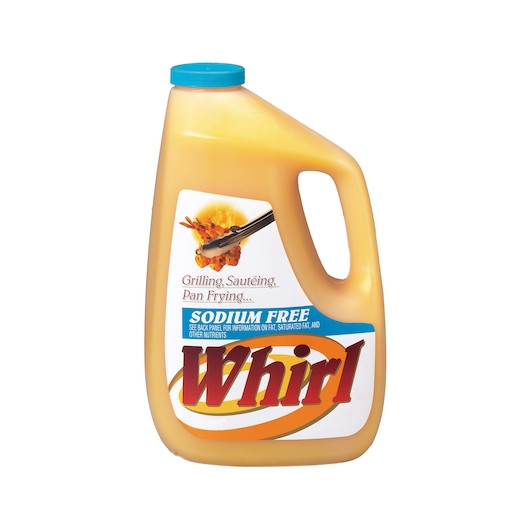 Description Whirl Sodium Free Butter Flavored Oil Sodium Free Oil Sodium free butter flavored oil Can be used for grilling, sauteing, and pan frying Resists scorching and spattering No need to melt or clarify No refrigeration needed 1 gal. (3.78 l) each 3 bottles per case The Whirl Sodium Free Butter Flavored Oil can be used as a replacement for unsalted butter in sauces, roux and marinades. This oil maintains flavor and doesn’t scorch even in high cooking temperatures. Suitable for those following a low sodium diet, the bulk pack is ideal for restaurants, diners and bistros.